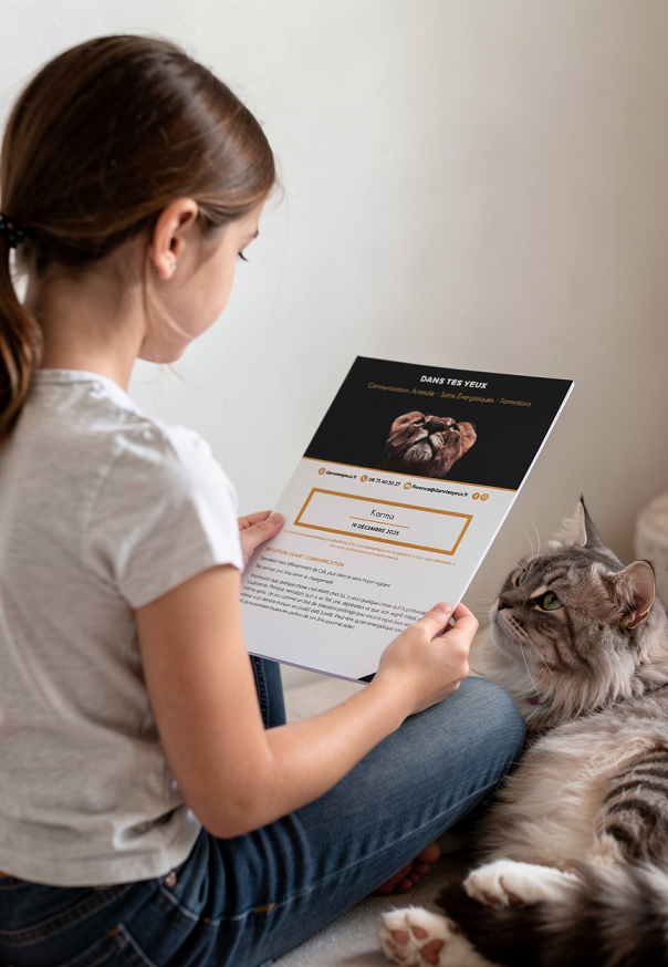 Les services proposés par Dans Tes Yeux ne remplacent, ni l’avis d’un vétérinaire ou son traitement, ni l’avis d’un autre professionnel de la santé animale. Il ne s’agit pas d’une science exacte : des erreurs sont possibles et comme tous les échanges, des incompréhensions peuvent perdurer. Il n’est pas possible de prévoir les résultats ou d’imposer un changement.